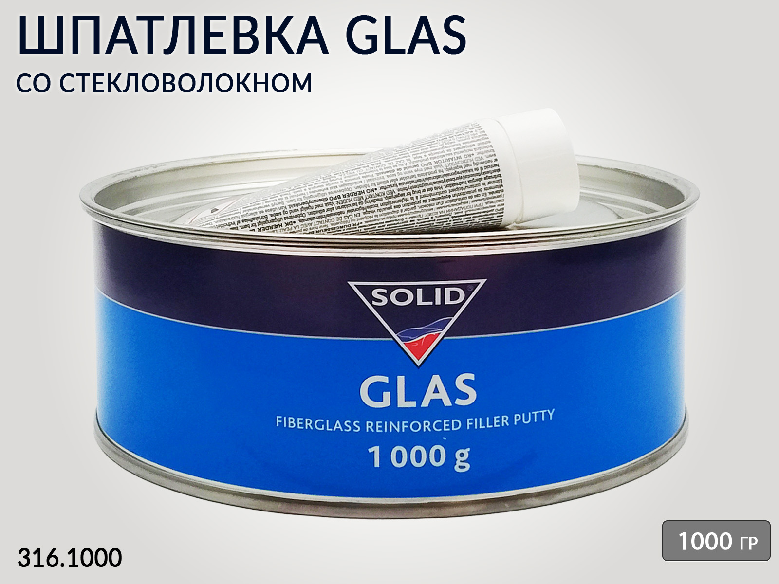 Шпатлевка со стекловолокном GLAS SOLID (316.1000) это наполнительная шпатлевка, усиленная стекловолокном. Отличается очень высокой механической прочностью и виброустойчивостью, вследствие чего рекомендуется к применению на начальном этапе шпатлевания. Служит для заполнения глубоких неровностей, а также усиливает растянутый после кузовного ремонта металл. Предназначена для ремонта участков сквозной коррозии легковых и грузовых автомобилей, автобусов. Обладает адгезией к поверхностям различного рода.