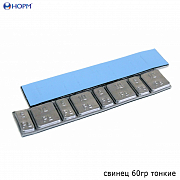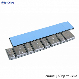 Самоклеющиеся свинцовые грузики 60гр НОРМ (0062) плоской формы применяются для устранения дисбаланса колес. Двусторонний синий скотч на полиэтиленовой основе с защитной пленкой. Веса грузиков — 5гр и 10гр. Количество в упаковке — 50 шт.