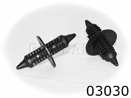 Автокрепеж 03030 ROKLAND предназначен для замены штатного крепежа в автомобилях марки GM (ДЖИЭМ). Место установки автомобильной клипсы 03030: Крепление радиатора.