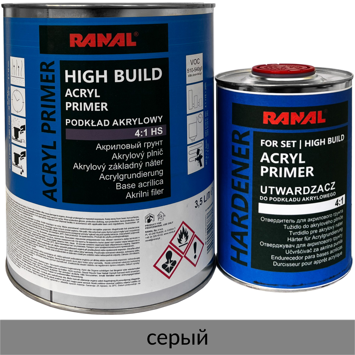 Грунт 4+1 серый HIGH BUILD акриловый толстослойный с отвердителем RANAL (3,5л+1л)