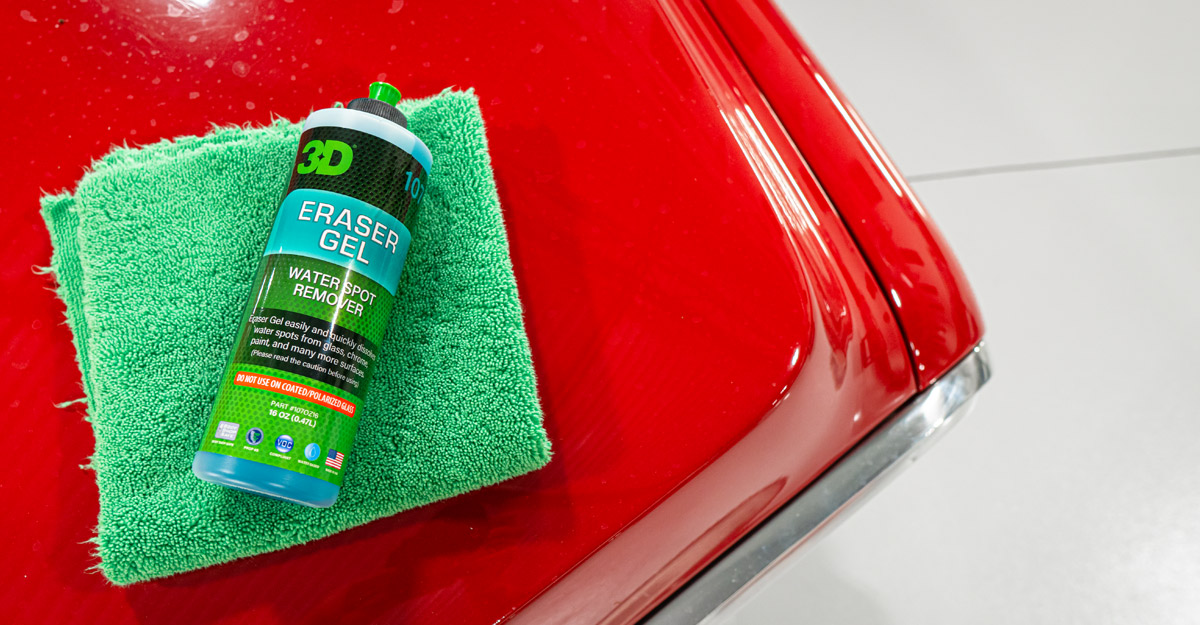 Средство Eraser Water Spot Remover от 3D - гелеобразное средство для удаления пятен воды и водного камня. Мощная и безопасная формула состава помогает быстро и эффективно растворить застарелые пятна от воды и подтеки, образовавшиеся на поверхности лакокрасочного покрытия, стеклах и хроме вашего автомобиля, лодке, катера. Благодаря кислотам в составе средства эффективно и безопасно очищает поверхность от всех известковых отложений, размягчает твердые минералы, образующиеся из-за жесткой воды. Оптимально подобранная комбинация кислотных компонентов и смачивающих веществ позволяет удалить глубоко въевшиеся водные отложения, которые со временем могут закрепиться в порах лака, что приведет к необходимости абразивной полировки лакокрасочных поверхностей.