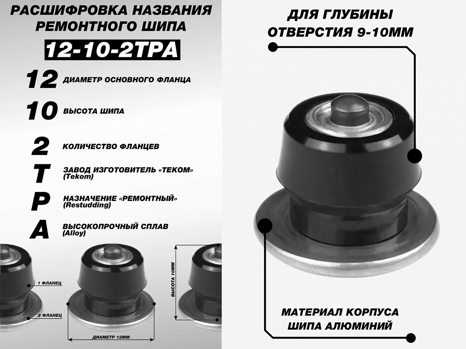1. шипы ремонтные 9-10 мм 12-10-2ТРА (100шт)1
