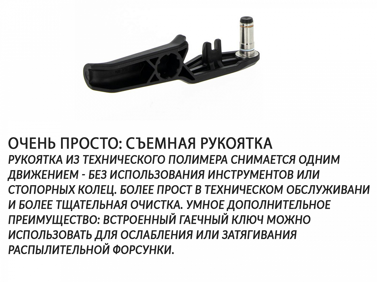 - Удобная быстросъемная рукоятка.