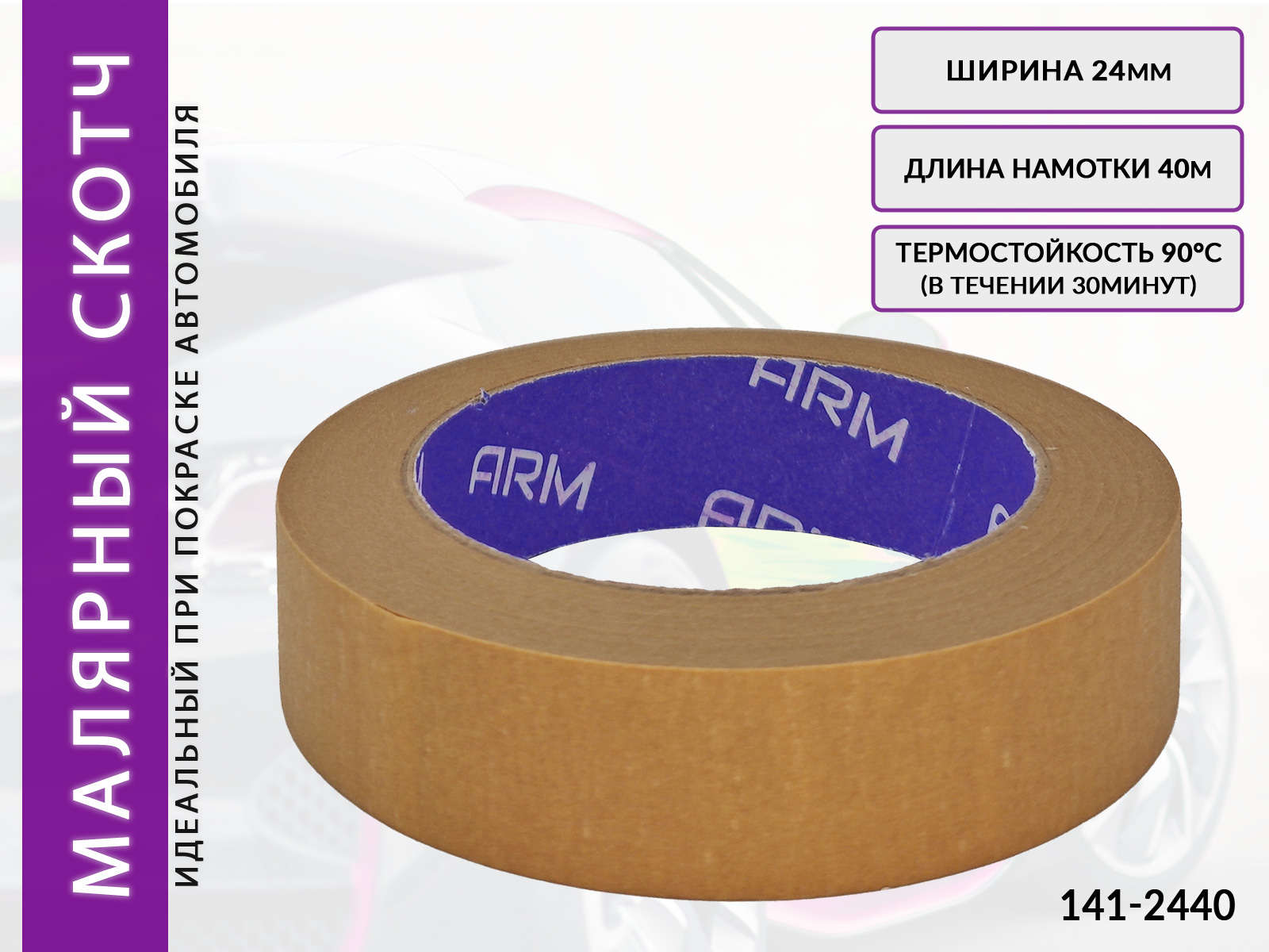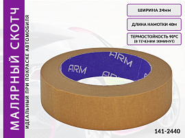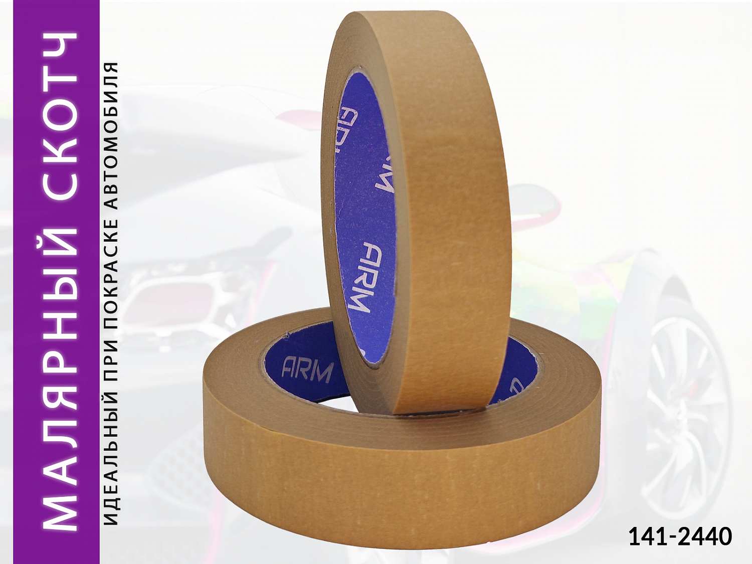 Профессиональная малярная маскирующая лента ARM (141-2440) коричневого цвета предназначена для закрепления маскировочных материалов при покрасочных работах автомобиля или любых других конструкций, обладает очень хорошей устойчивостью к средним и высоким температурам.