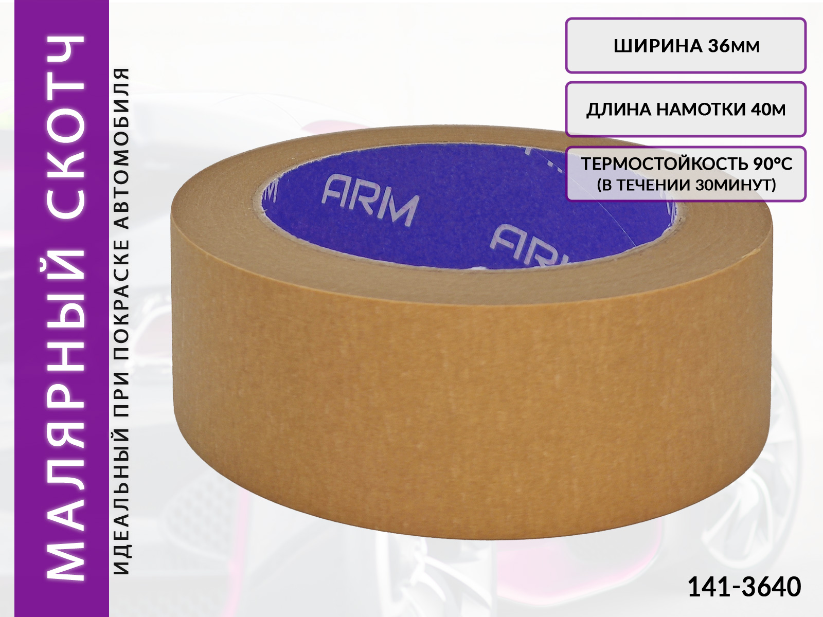 Профессиональная малярная маскирующая лента ARM (141-3640) коричневого цвета предназначена для закрепления маскировочных материалов при покрасочных работах автомобиля или любых других конструкций, обладает очень хорошей устойчивостью к средним и высоким температурам.