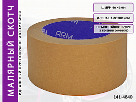 Профессиональная малярная маскирующая лента ARM (141-4840) коричневого цвета предназначена для закрепления маскировочных материалов при покрасочных работах автомобиля или любых других конструкций, обладает очень хорошей устойчивостью к средним и высоким температурам.