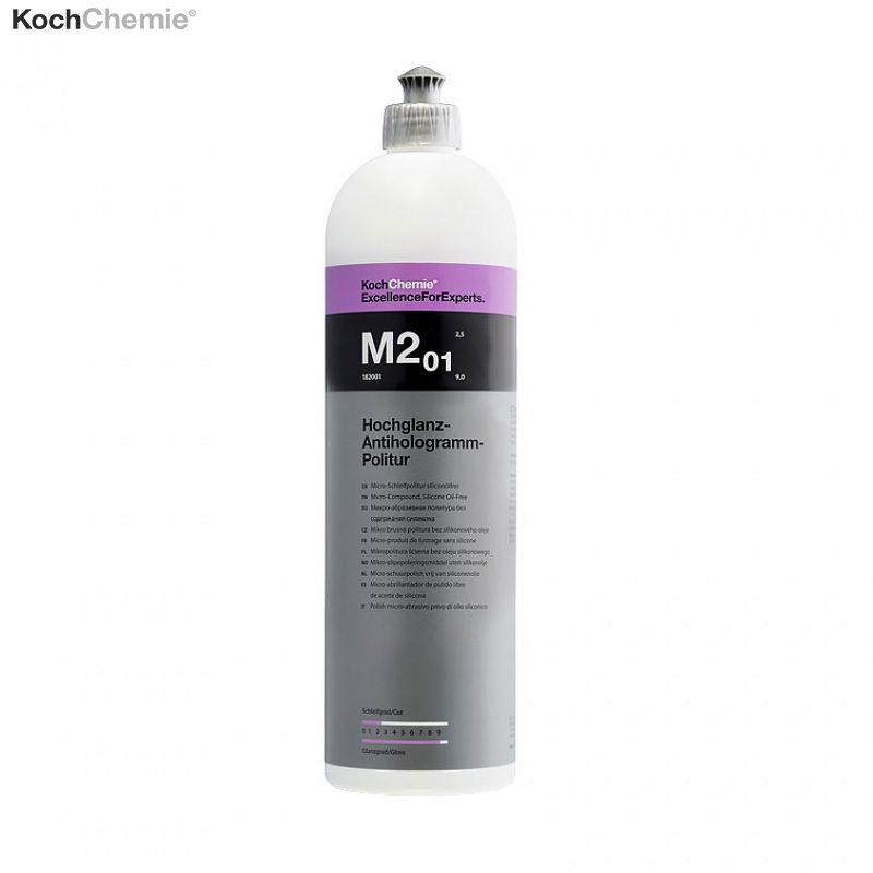 Высокоглянцевая антиголограммная полироль без силиконов и восков HochGlanz-AntiHologramm-Politur KOCH CHEMIE предназначена для окончательной обработки ЛКП, поликарбоната и других материалов с помощью полировальной роторной машинки либо вручную. Применяется для удаления неглубоких потёртостей и рисок полученных в процессе эксплуатации поверхностей, а так же для полировки предварительно отшлифованных абразивом (не грубее Р3000) свеженанесённых лаков и эмалей. Материал обладает высокой эффективностью и обеспечивает удаление рисок с поверхности керамиклаков.