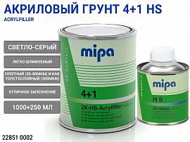 Грунт 4+1 светло-серый HS акриловый с отвердителем MIPA (1л+0,25л)