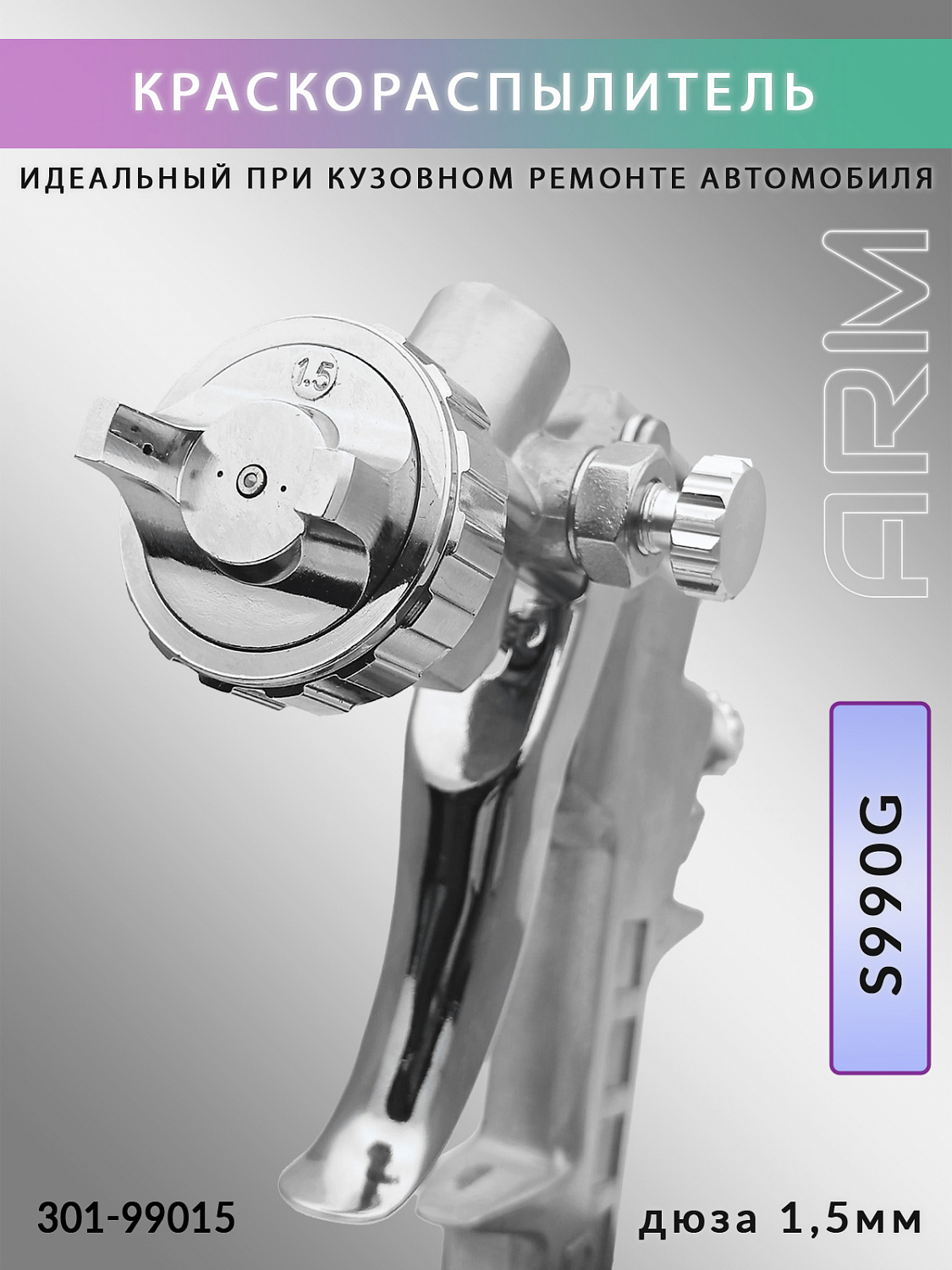Краскораспылитель S990G ARM (301-99015) предназначен для нанесения лакокрасочных материалов при проведении малярных и кузовных работ. Обеспечивает равномерное распыление краски, лака или грунта с минимальными потерями материала.