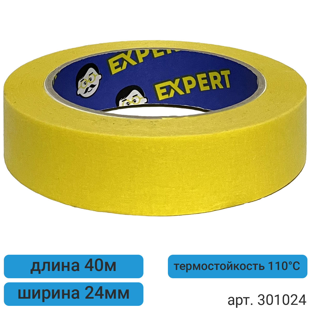 1. малярная лента 24мм*40м желтая до 110°С термостойкая EXPERT (Италия) 1