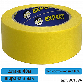 1. малярная лента 36мм*40м желтая до 110°С термостойкая EXPERT (Италия) 1
