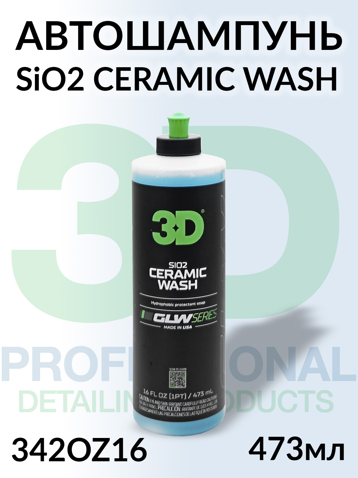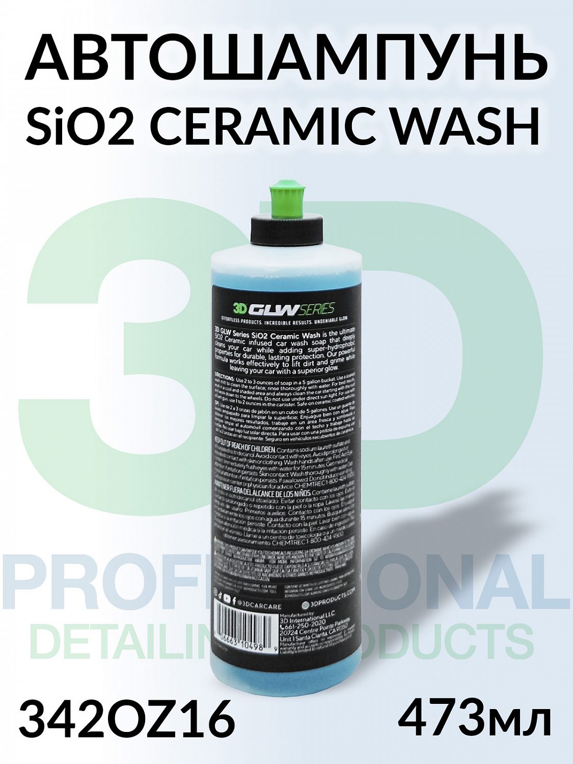 Автошампунь для керамического покрытия SiO2 CERAMIC WASH серия GLW 3D (473мл)