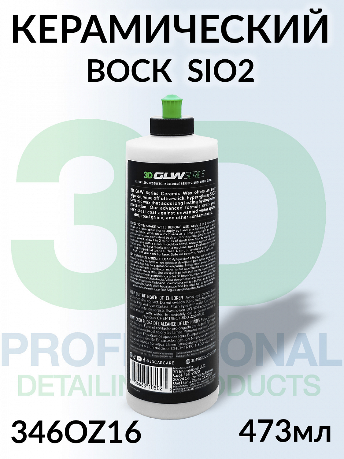 Полимерное защитное покрытие GLW SERIES SIO2 CERAMIC WAX 3D (346OZ16) - это высококачественный воск с инновационной технологией SiO₂ (диоксид кремния), который обеспечит вашему автомобилю не только глубокий блеск, но и надежную защиту от внешних факторов. Воск отталкивает воду и загрязнения, создавая гидрофобную поверхность, что значительно облегчает уход за автомобилем.