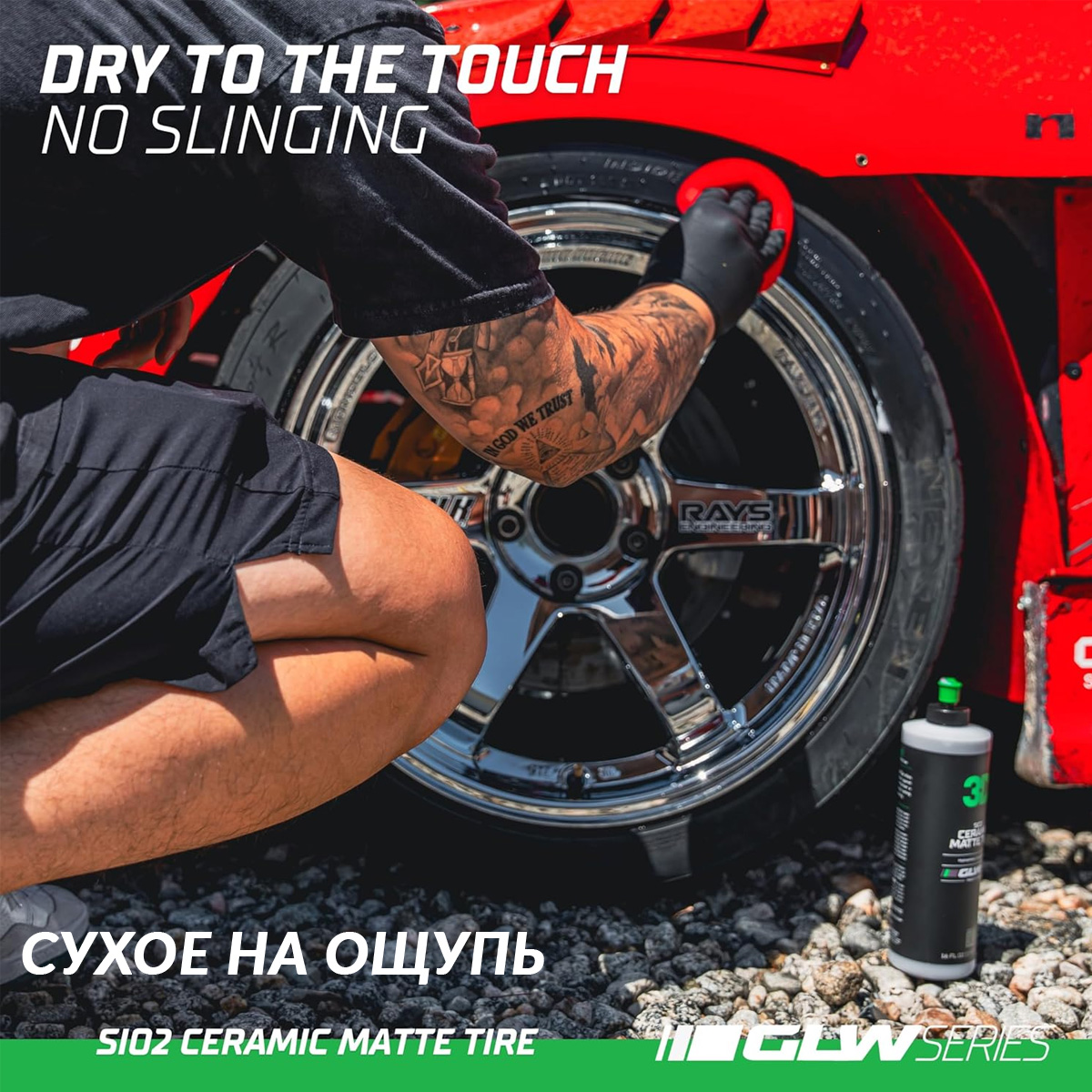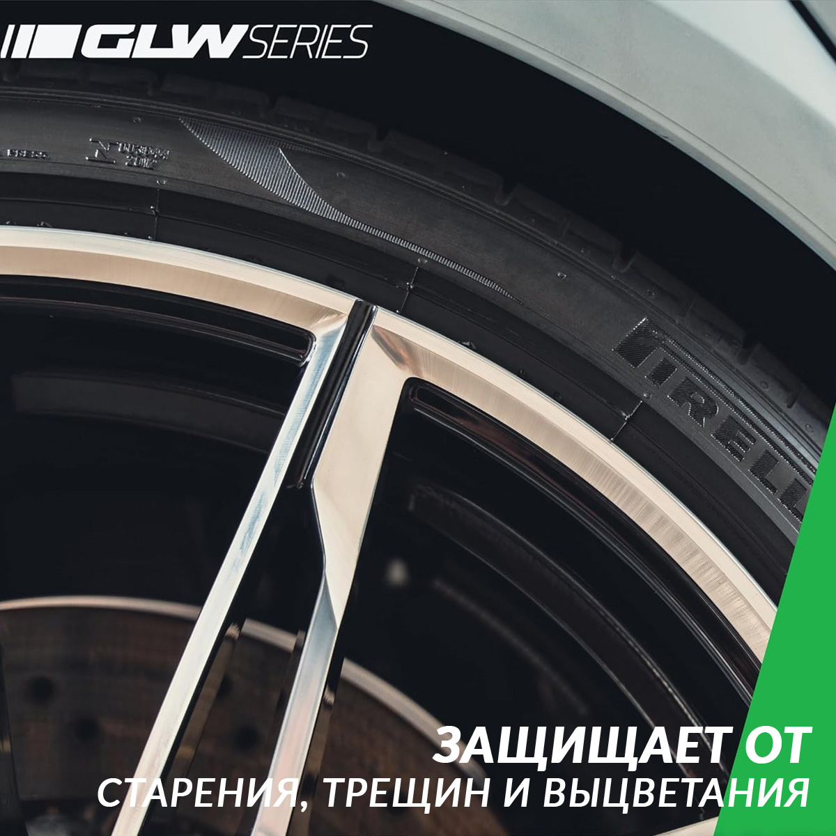 - Защита от УФ-излучения. Защищает ваши шины от выцветания, трещин и обесцвечивания с помощью мощного, долговечного средства GLW Series для полировки шин SiO2 Matte Tire Shine.