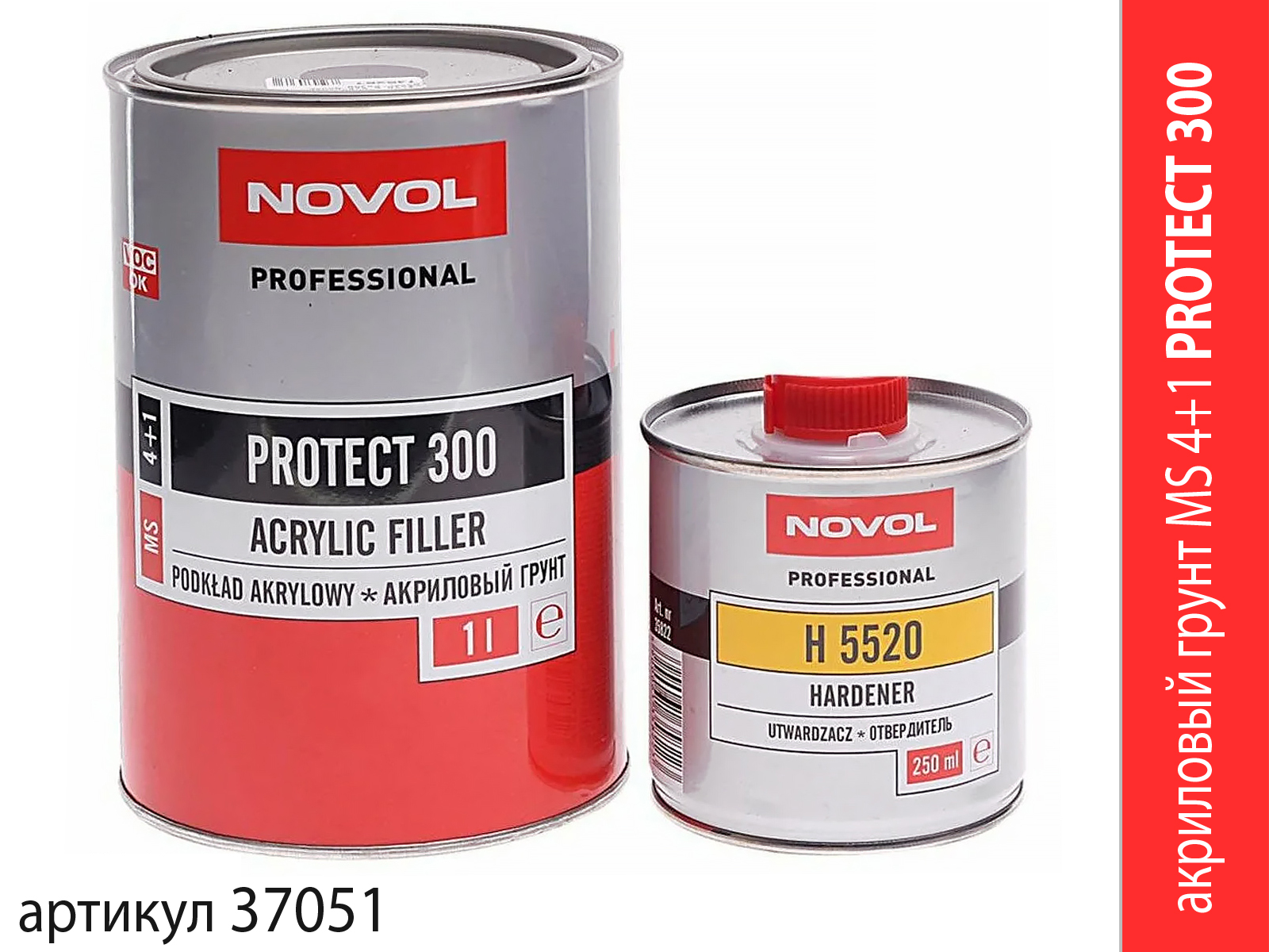 Грунт 4+1 MS красный PROTECT 300 акриловый с отвердителем NOVOL (1л+0,25л)