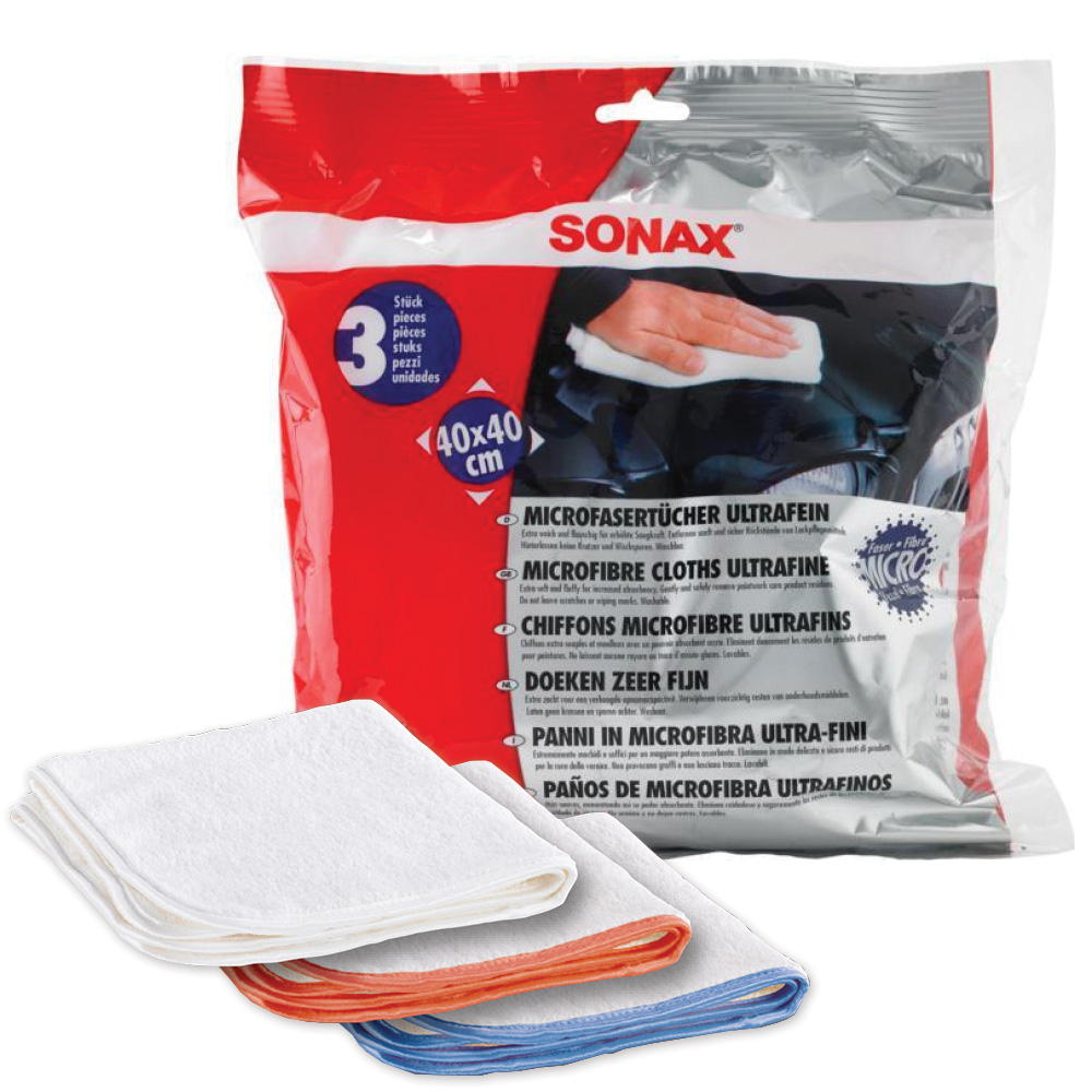 Салфетки сверхтонкие микрофибра SONAX (арт. 450 700) - профессиональные супер мягкие абсорбирующие салфетки для получения оптимальных результатов при обработке любых, в том числе деликатных, лакокрасочных поверхностей. Впитывает остатки воска и полироли, обеспечивает сияющий и глубокий блеск без царапин, полос и разводов. Не царапает поверхность и не оставляет разводов. Со скругленными концами и внутренними швами.