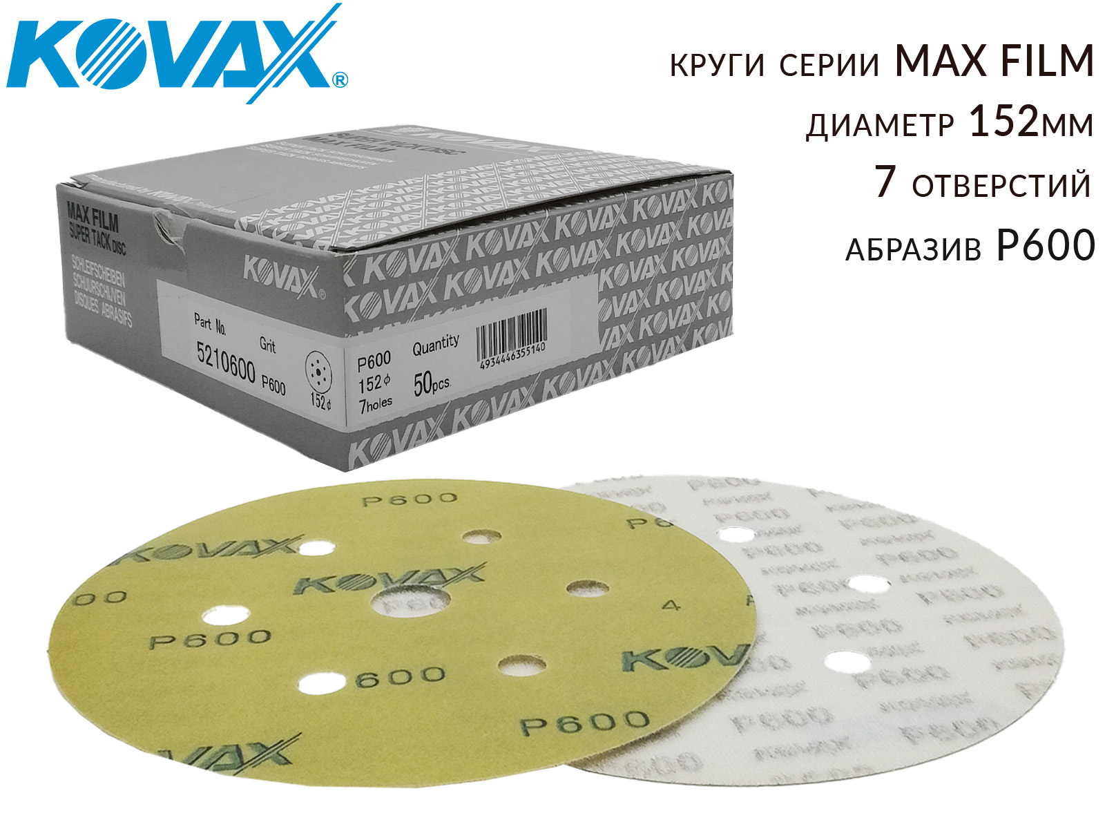 1. круг абразивный P 600 152мм 7 отверстий MAX FILM KOVAX1