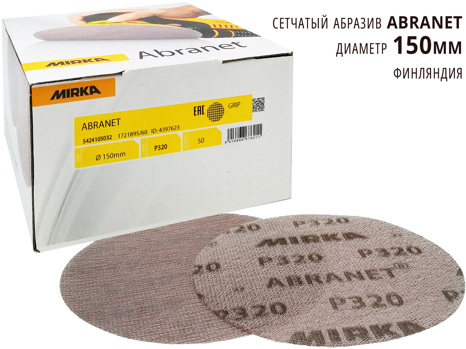 Круг абразивный P 320 150мм сетка ABRANET MIRKA - оригинальная, многофункциональная шлифовальная сетка, сочетающая в себе отличную продуктивность и больший ресурс работы по сравнению с традиционными абразивами. Предназначен для ручного и машинного шлифования в сухом режиме.  Это практически беспыльное шлифование, которое обеспечивает и чистую рабочую среду, и более качественную поверхность.