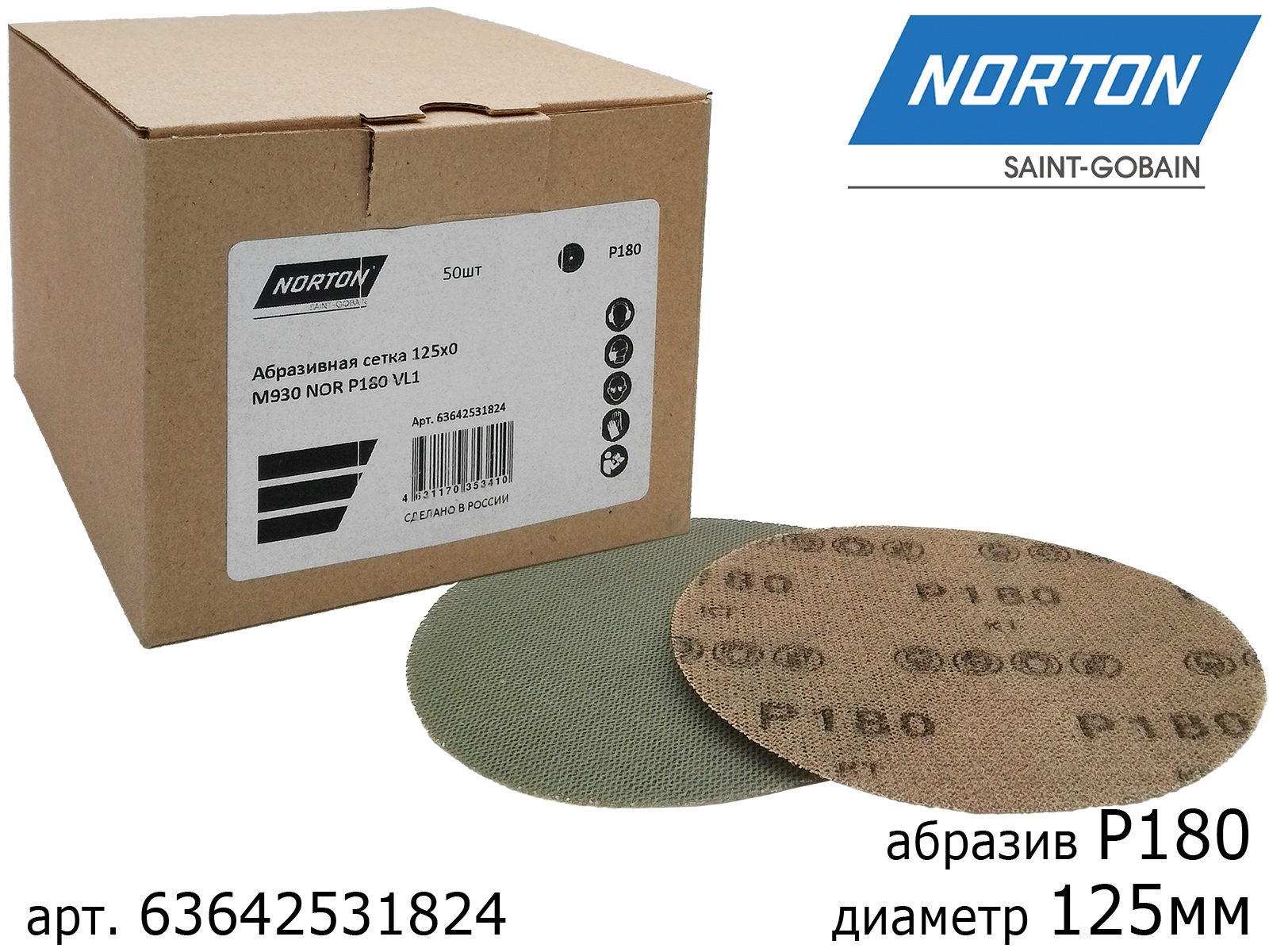 Круг абразивный P 180 125мм сетка М930 ceramic NORTON