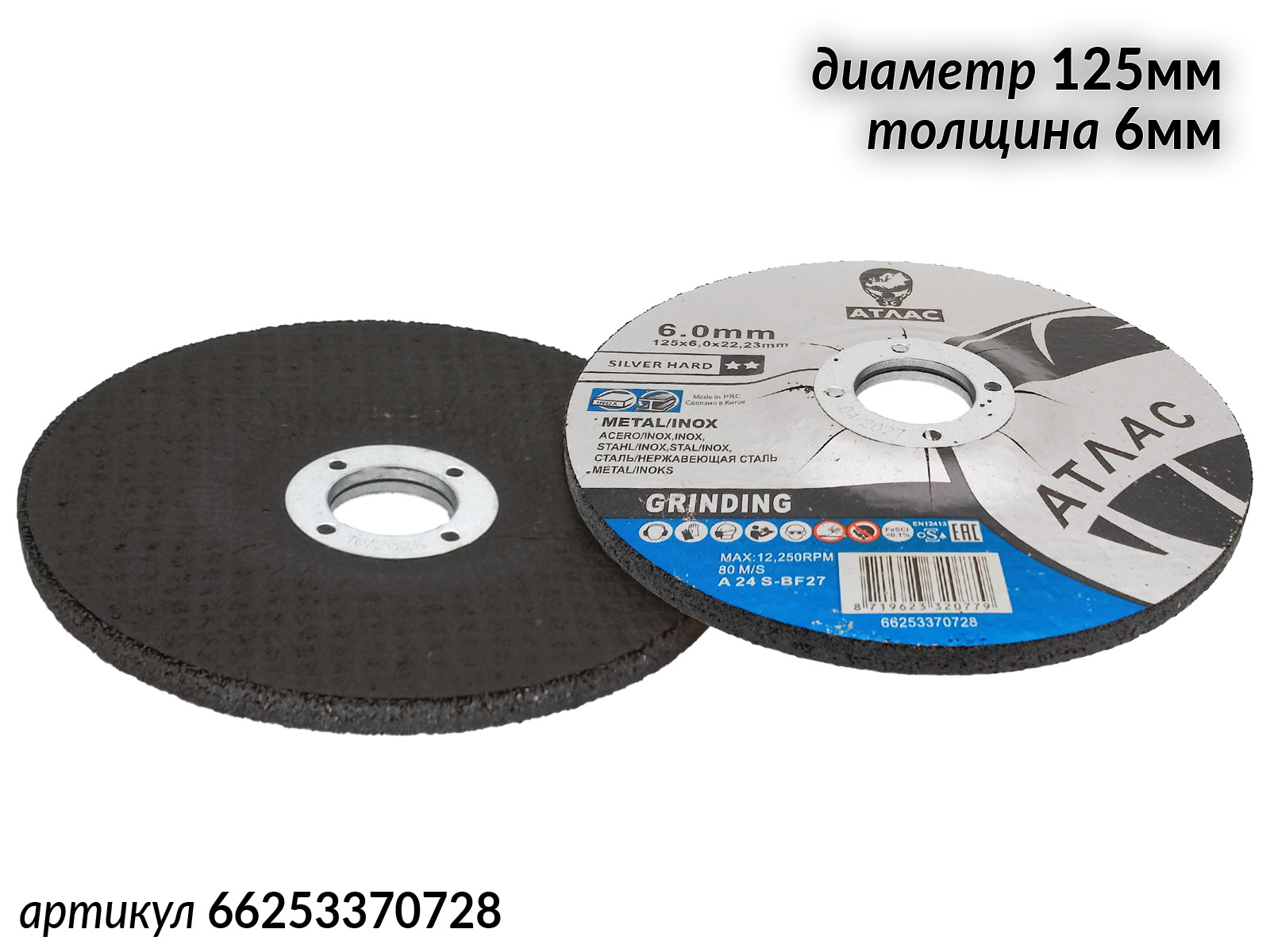 1. диск зачистной 125х6мм по металлу и нержавейке SILVER HARD АТЛАС1