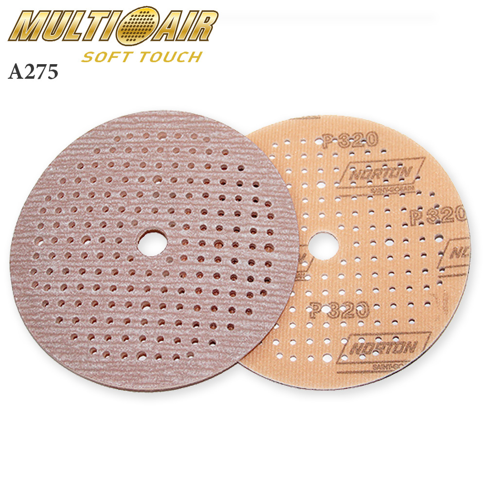 Абразивные круги Multi-Air Soft-Touch A275 NORTON изготовлены со специальным мягким поролоновым слоем на тыльной стороне и обладают высокой производительностью и исключительно длительным сроком службы, будучи непосредственно соединены с абразивной бумагой. Поролоновый слой легко выбирает любые перепады поверхности, поддерживая очень однородное снятие слоя и высококачественную чистовую обработку поверхности. Помимо этого, оригинальная система Soft-Touch запатентованная фирмой NORTON, рассчитана для каждого вида применения. Разные цвета липучки для кругов разной зернистости облегчают использование кругов NORTON Pro Soft-Touch.