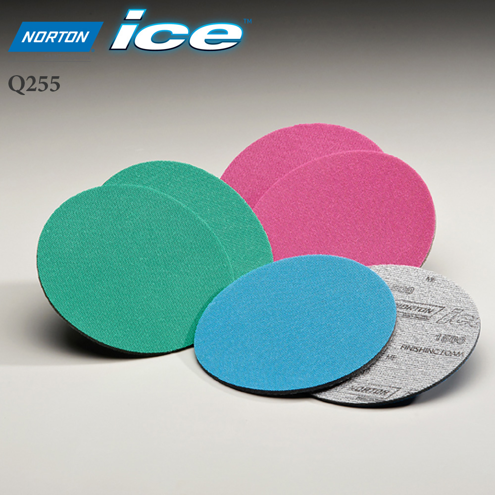 Полировальные круги ICE Q255 NORTON диаметром 150мм идеально подходят для быстрой точечной полировки кузова. Новая конструкция с открытыми ячейками впитывает воду и равномерно распределяет давление по поверхности. Norton Ice обеспечивает неизменное качество резки на протяжении всего срока службы, гладкость поверхности и уменьшение глубины царапин.