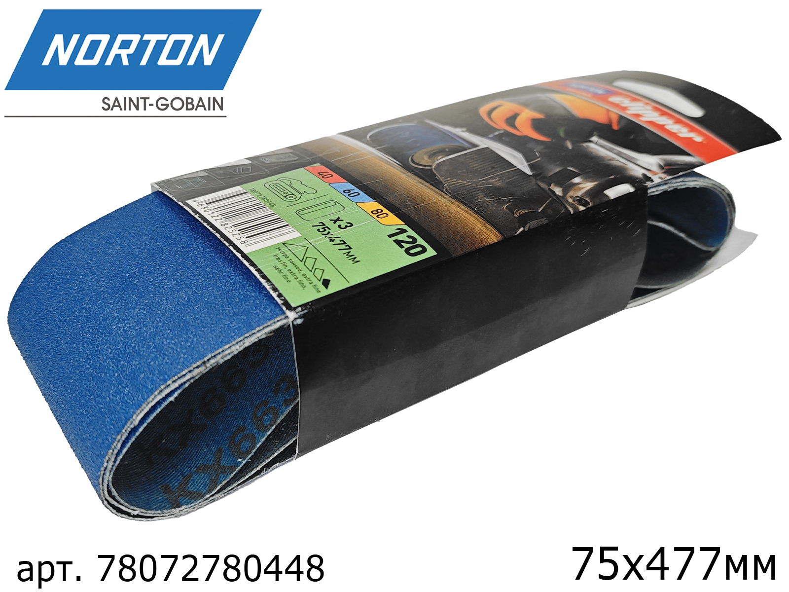 1. лента абразивная Р 120 75х477мм CLIPPER NORTON1