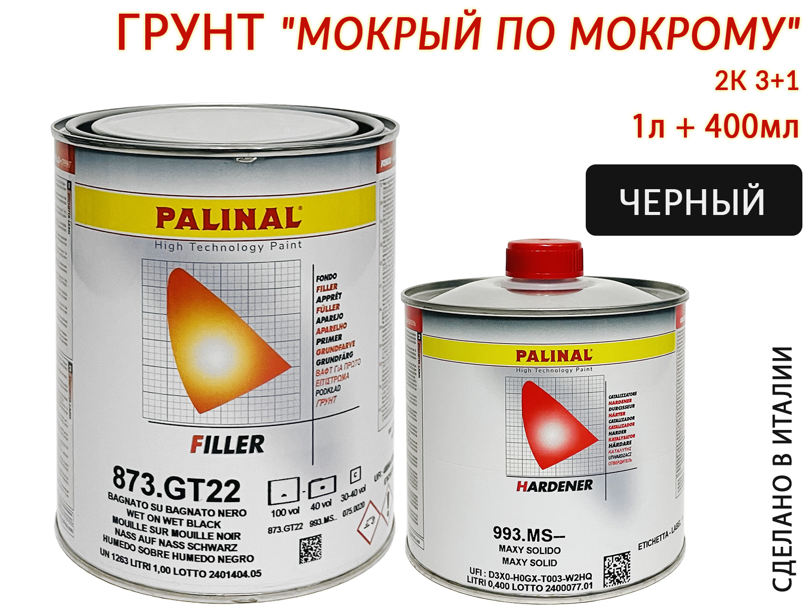 Грунт 3+1 черный "мокрый по мокрому" с отвердителем 993MS PALINAL (1л+0,4л)