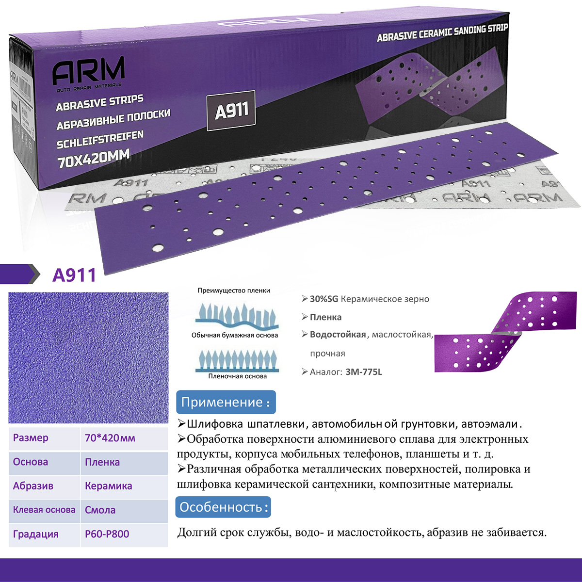 Особенности абразивных полосок A911 ARM: