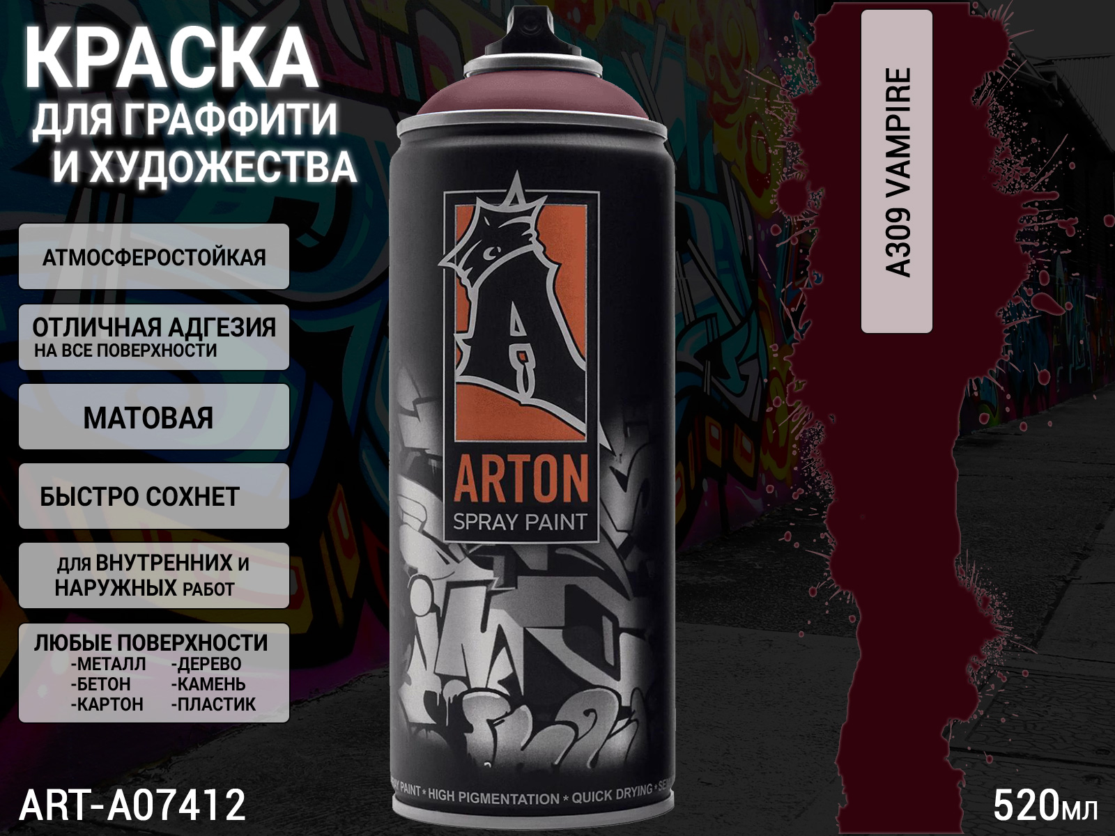 A309 вампир/Vampire краска для граффити аэрозоль ARTON (520мл)