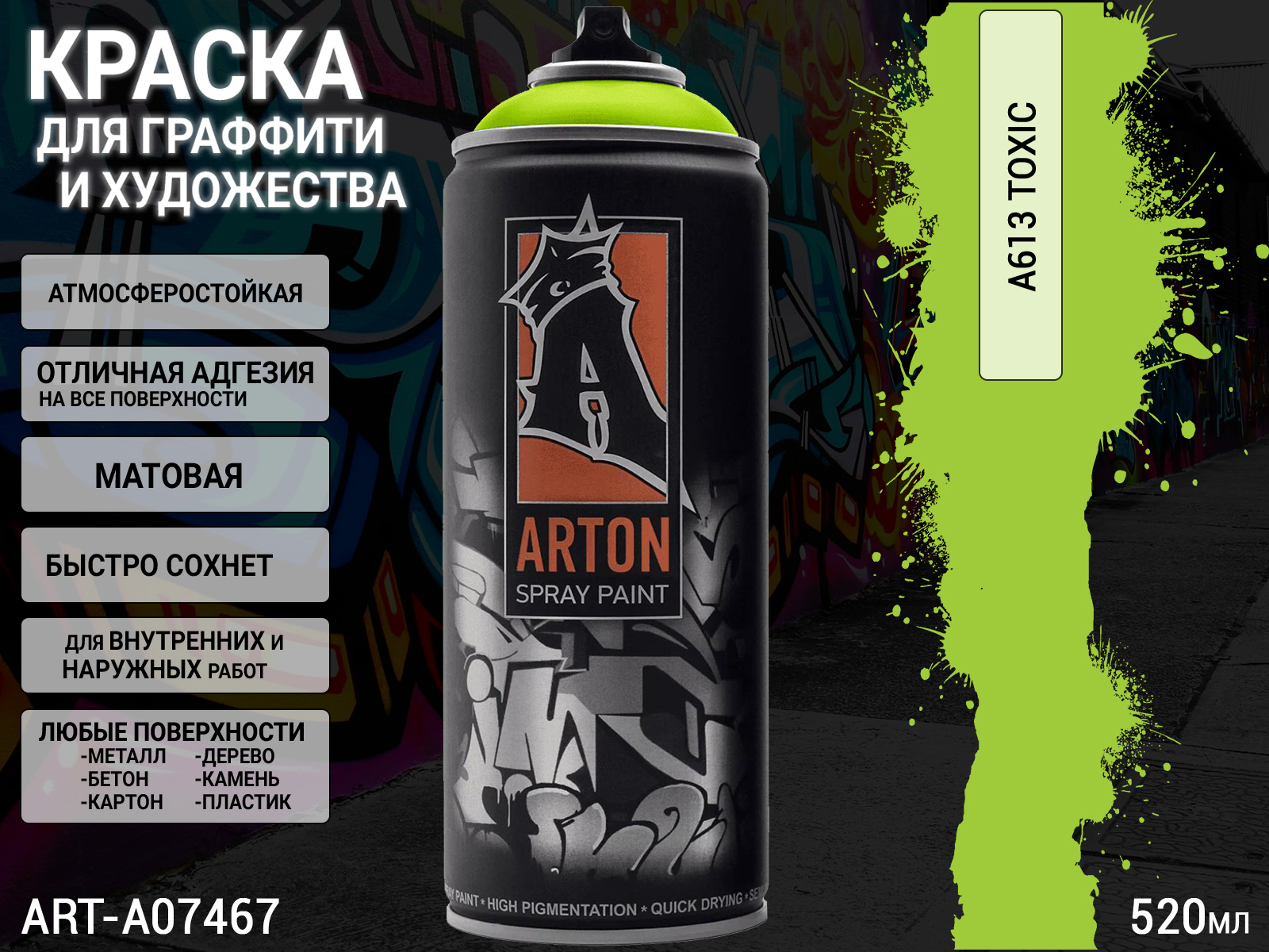 1. A613 токсичный/TOXIC краска для граффити аэрозоль ARTON (520мл)1
