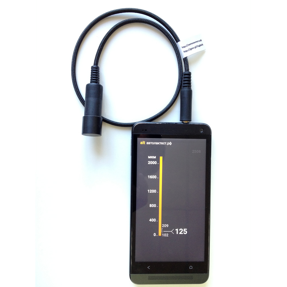 Тестер ЛКМ для смартфона АЛТ-1м хорошо подходит для измерения толщины краски на поверхности черных металлов. Датчик-гарнитура подключается к Android или iOS смартфону через стандартный 4-х контактный разьем jack 3.5мм вместо наушников с микрофоном. При измерении откалиброванным прибором толщины ЛКП в пределах 0-2000 мкм погрешность измерения не превышает 5%. Для толщины покрытий до 200 мкм (в этом промежутке находится толщина заводской краски большинства автомобилей) величина абсолютной погрешности измерения не более 10 мкм. Для покрытий в пределах 2мм (2000мкм) абсолютная погрешность измерения не превышает 0.1 мм. Такие характеристики позволяют уверенно отличать заводскую покраску от ремонтной.