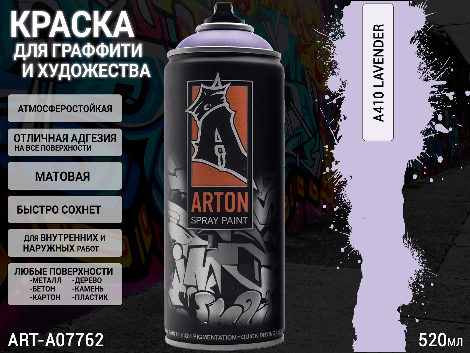 1. A410 лаванда/LAVENDER краска для граффити аэрозоль ARTON (520мл)1