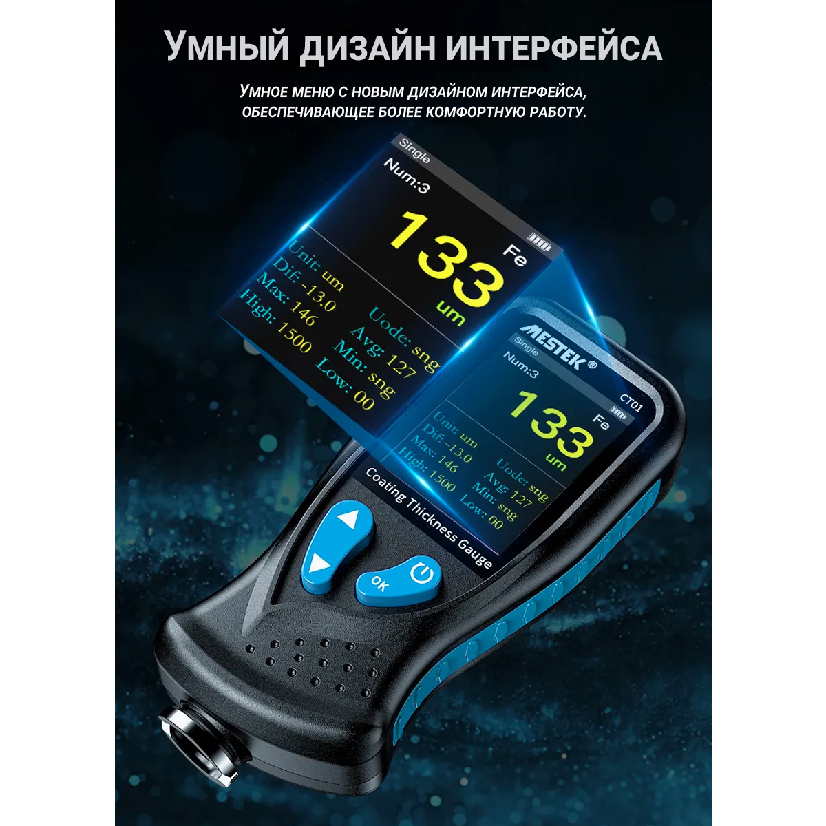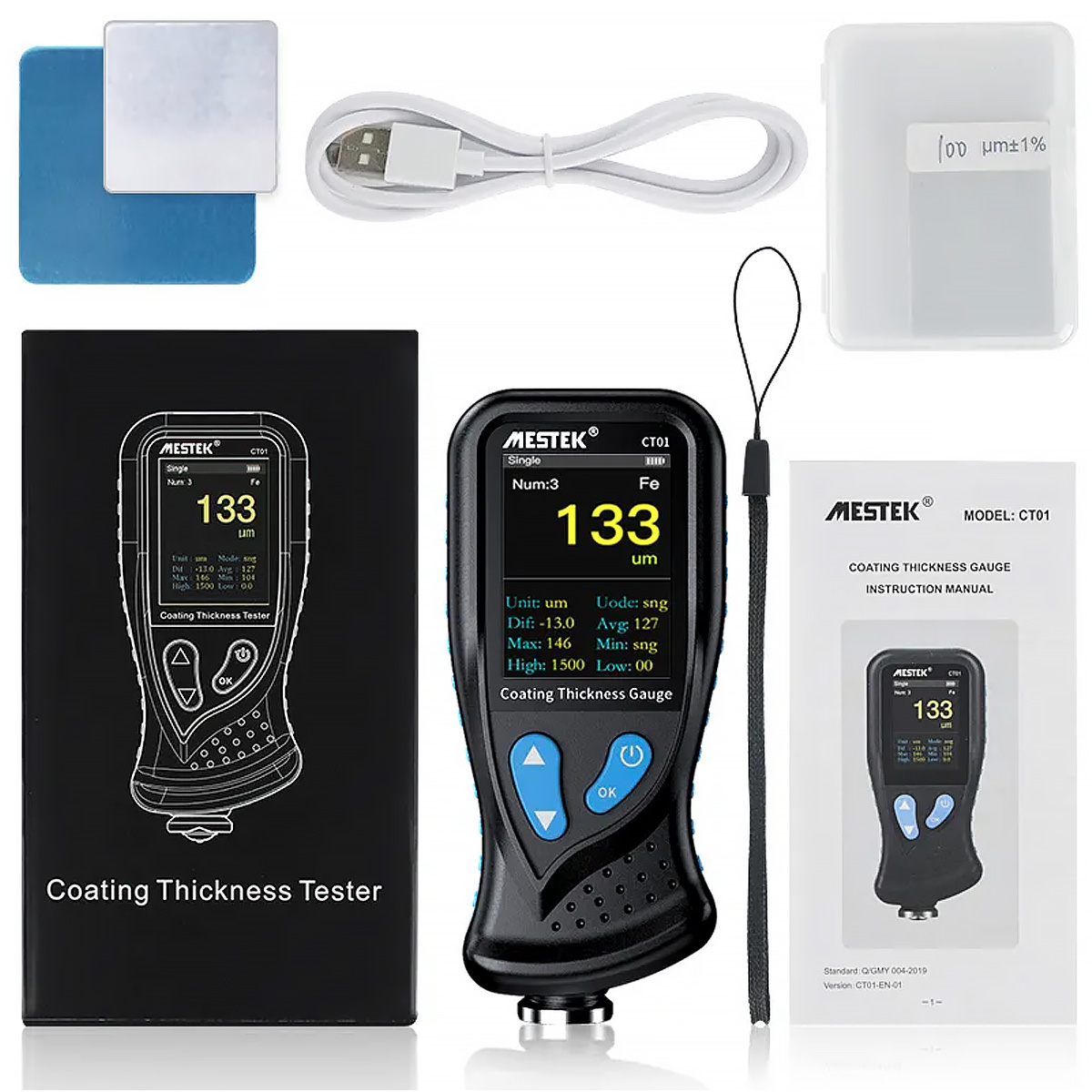Толщиномер ЛКМ CT01 все металлы, цветной дисплей, встроенный аккумулятор MESTEK (в кейсе)