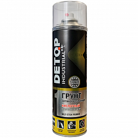Аэрозольный кислотный грунт DETOP серии INDUSTRIAL - наполненный антикоррозионными пигментами, предназначен для барьерной защиты от коррозии поверхностей черных металлов, оцинкованной и нержавеющей стали, меди, алюминия и других металлов. Заменяет фосфатирование, может использоваться под сварку, а также для защиты металлоконструкций при межоперационном хранении. Применяется в качестве адгезионного грунта с последующим покрытием грунт-эмалями и однокомпонентными или двухкомпонентными антикоррозионными грунтами в комплексе с защитно-декоративными эмалями типа акриловых, алкидных, винилацетатных и т.п. На грунт нельзя наносить полиэфирные материалы.