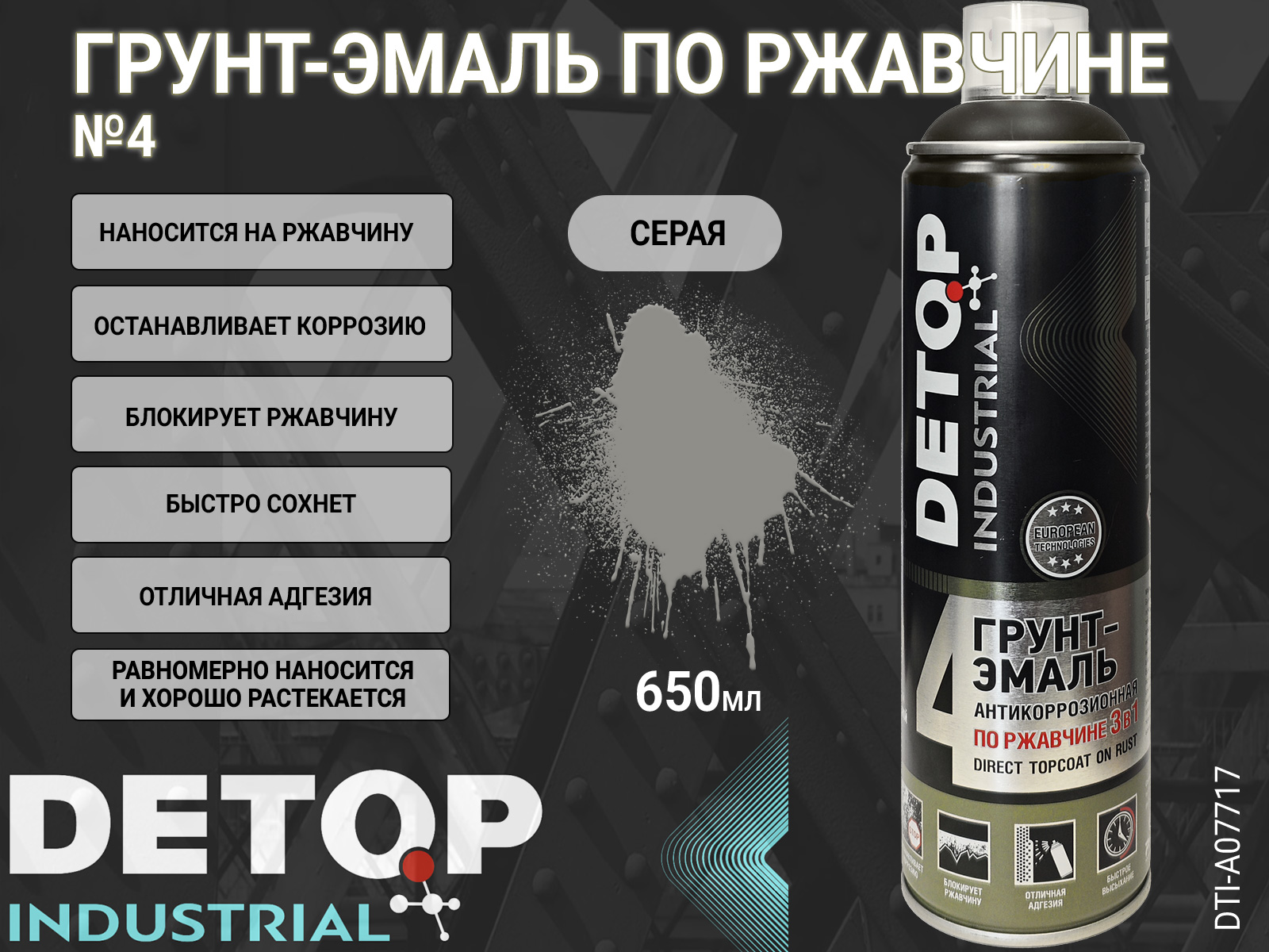 Грунт-эмаль №4 по ржавчине серая RAL-7005 "3 в 1" INDUSTRIAL DETOP (аэрозоль, 650мл)
