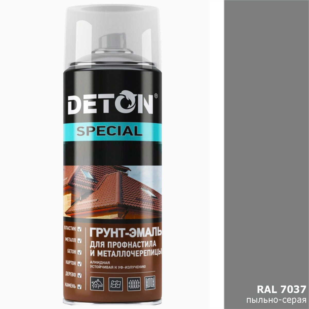 1. грунт-эмаль RAL 7037 пыльно-серая для профнастила и металлочерепицы DETON (аэрозоль, 520мл)1