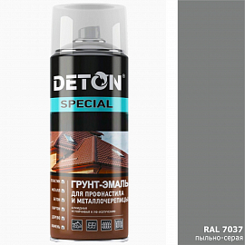 Грунт-эмаль RAL 7037 пыльно-серая для профнастила и металлочерепицы DETON (аэрозоль, 520мл)