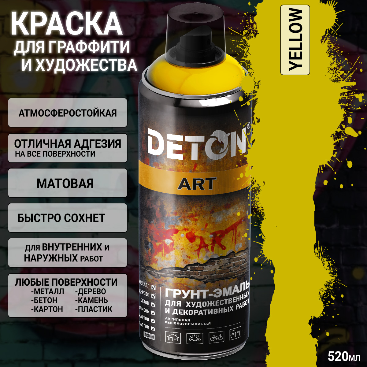 1. краска для граффити и дизайна YELLOW универсальная DETON ART (аэрозоль, 520мл)1