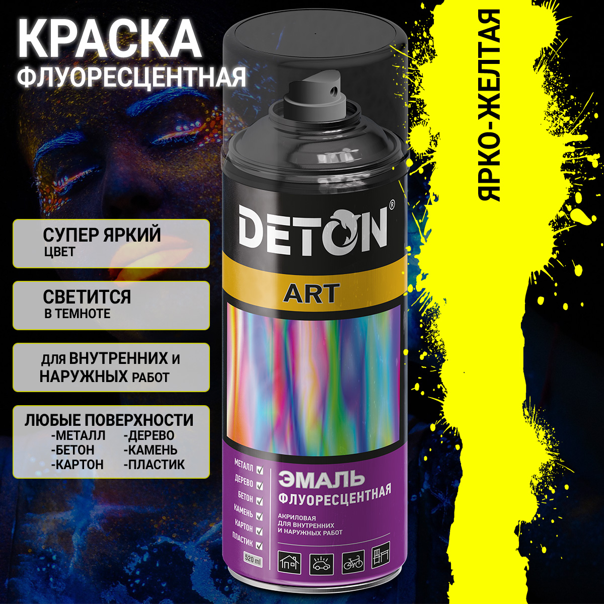 1. желтая ФЛУОРЕСЦЕНТНАЯ художественная эмаль DETON ART (аэрозоль, 520мл) 1