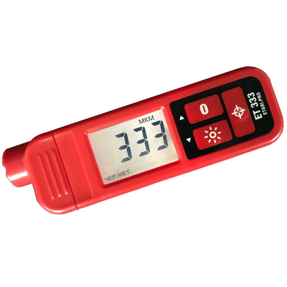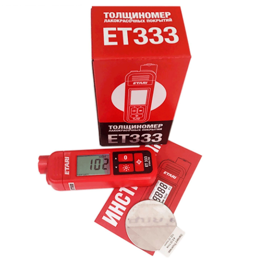 Толщиномер ЕТ-333 является обновленной версией толщиномера ET110, который выпускался с 2013 года. По сравнению с ЕТ-110, у модели ЕТ333 стоит новый процессор, чип и датчик, которые обеспечивают надежность и более стабильную работу при любых температурах, более энергосберегающий режим работы, более низкая стоимость, расширенная гарантия, но в нем отсутствуют фонарик и ультрафиолет (функции не первой важности) и чехлы. По итогам 2017 года этот прибор стал самым популярным среди толщиномеров "по железу".