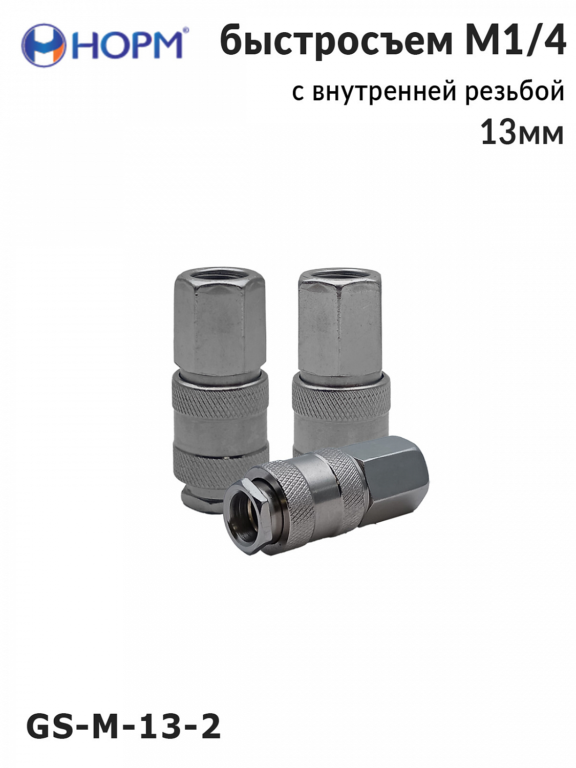 Быстросъем с внутренней резьбой НОРМ (GS-M-13-2) применяется для подключения пневмолиний к оборудованию и пневмоинструменту. Созданная конструкция из закаленой стали и композитного материала обладает высокой надежностью и герметичностью.
