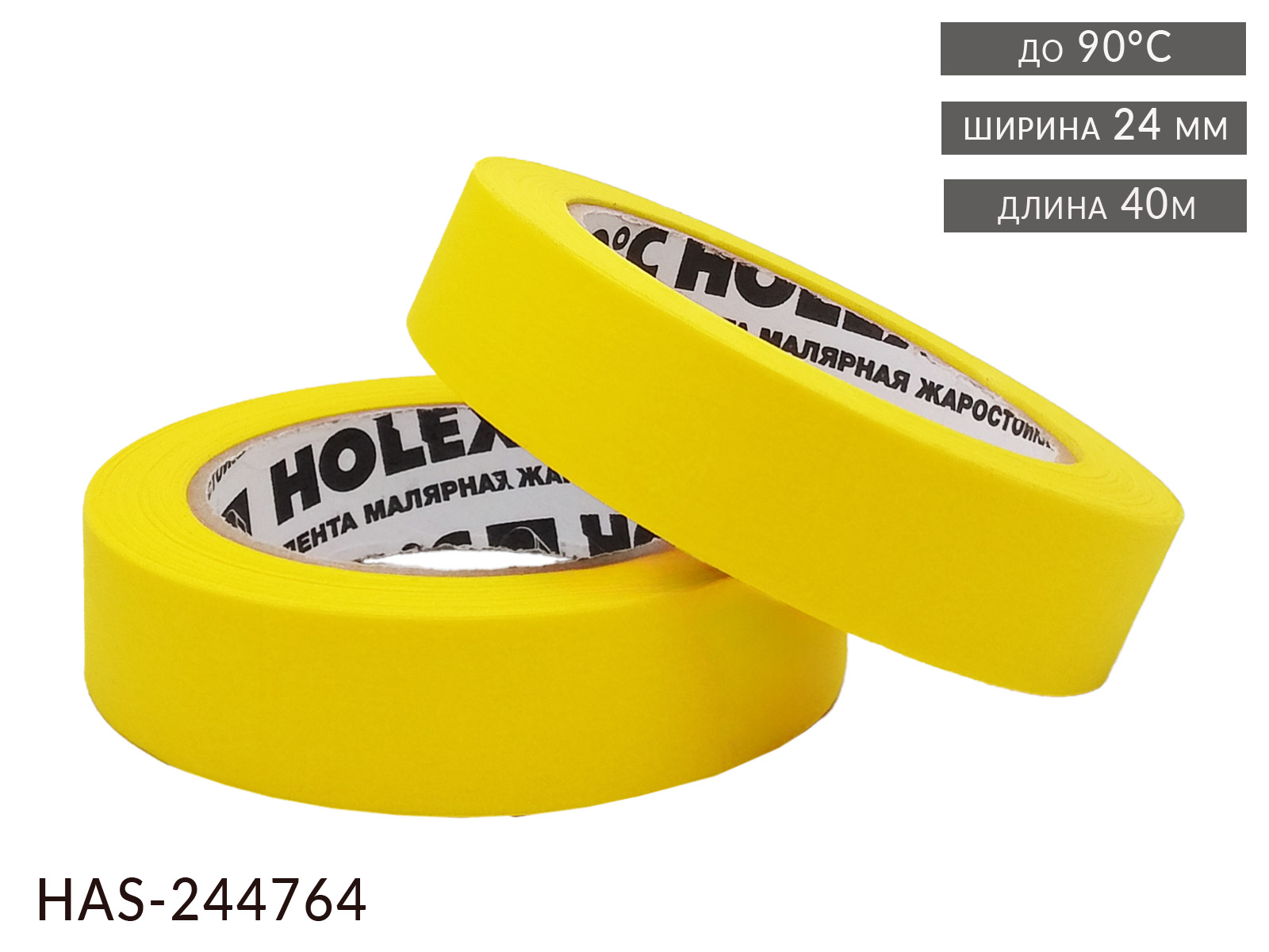 Малярная лента 24мм*40м желтая до 90°С термостойкая HOLEX