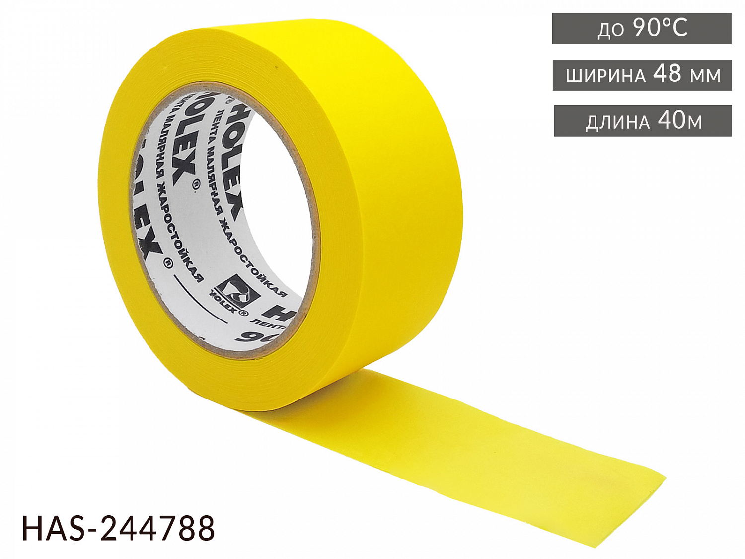 1. малярная лента 48мм*40м желтая до 90°С термостойкая HOLEX1