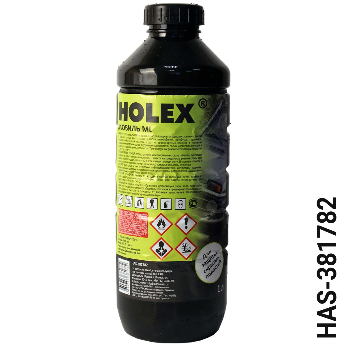 Мовиль HOLEX (HAS-381782) предназначена для защиты скрытых полостей (дверных панелей, боковин кузова, лонжеронов и т.д.). Покрытие отлично защищает металлические поверхности от коррозии, воздействия антиобледенительных реагентов, электролитов. Образует полутвердое эластично-упругое покрытие. Не воздействует на лакокрасочное покрытие, пластик и резину. Композиция на основе природных и синтетических пленкообразователей, ингибиторов коррозии, функциональных добавок и органического растворителя без запаха.