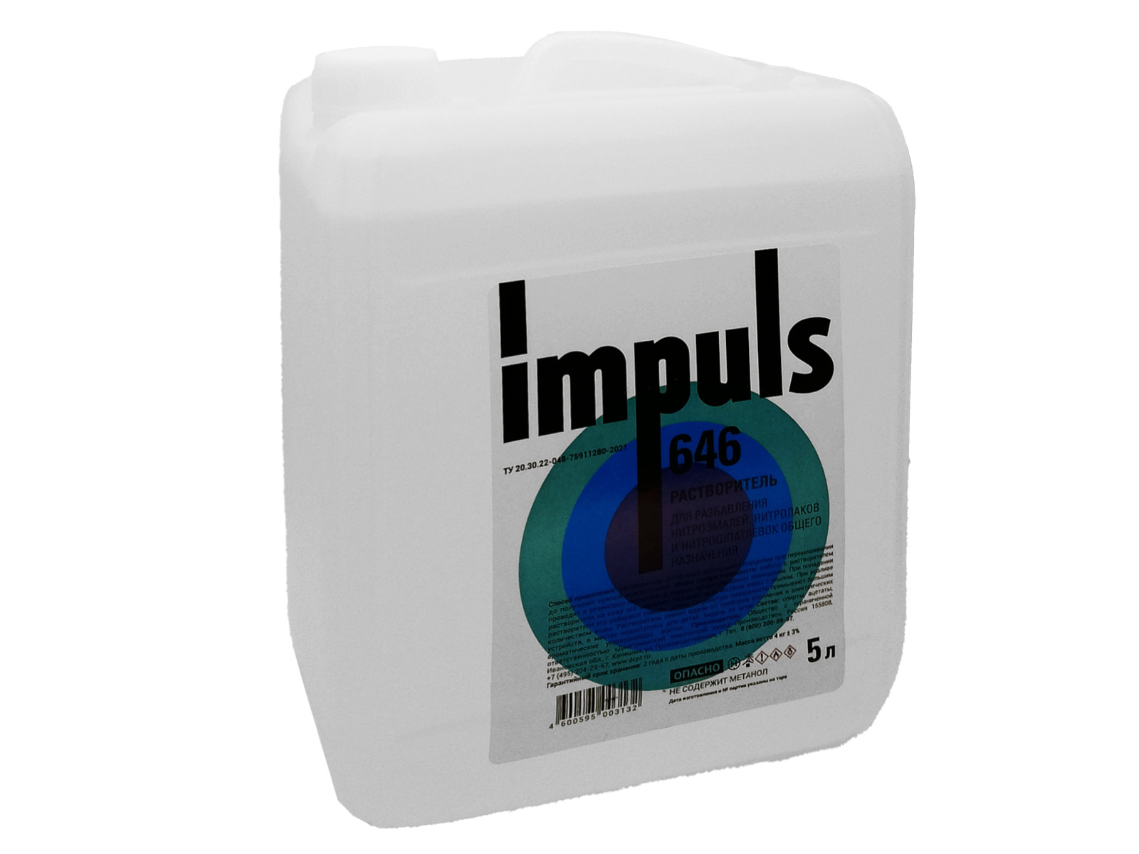 Растворитель 646 Impuls (IMPULS5) представляет собой бесцветную смесь летучих органических жидкостей без мути, расслаивания и взвешенных частиц. В авторемонте растворитель 646 применяют для разбавления 1К алкидных и 1К акриловых грунтов и эмалей обезжиривания металлических поверхностей и промывки малярного инструмента.