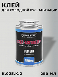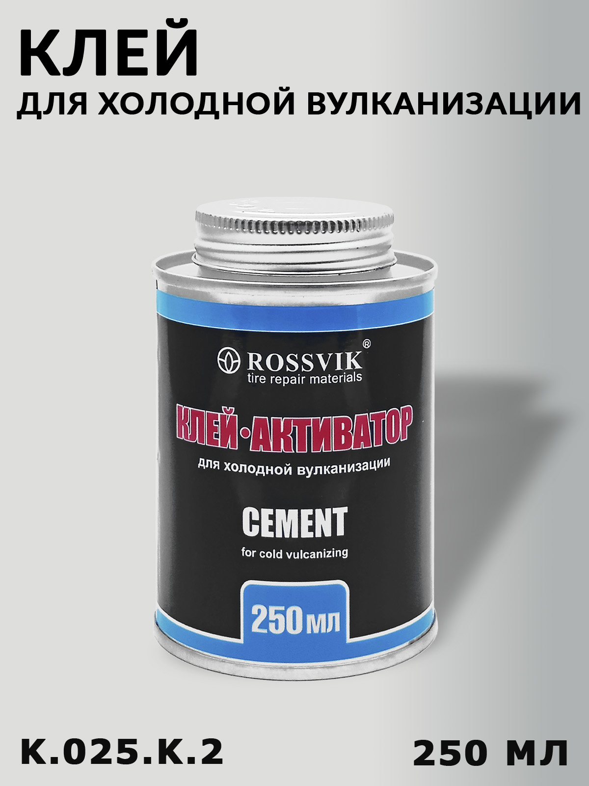 Клей для ХОЛОДНОЙ вулканизации ROSSVIK (K.025.K.2) – это универсальный клей-активатор, который эффективно применяется для восстановления повреждений с использованием латок, грибков, жгутов и кордовых пластырей методом "холодной" вулканизации.