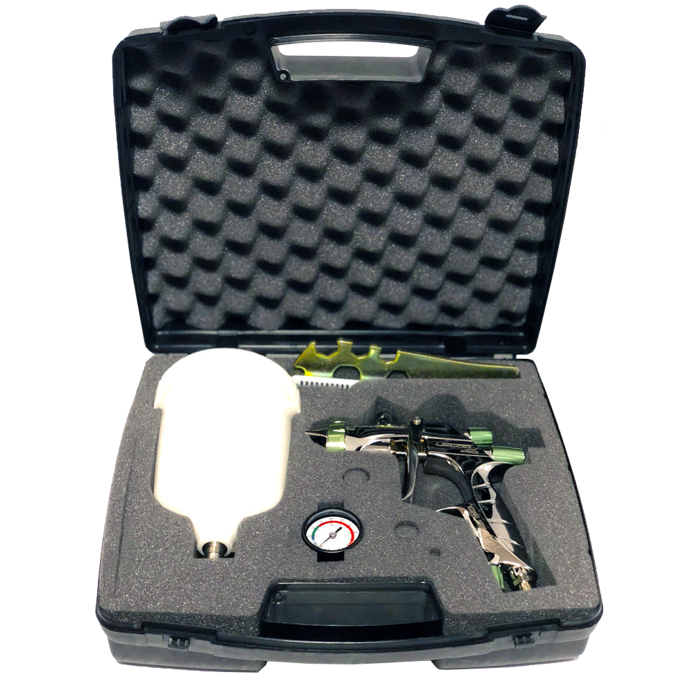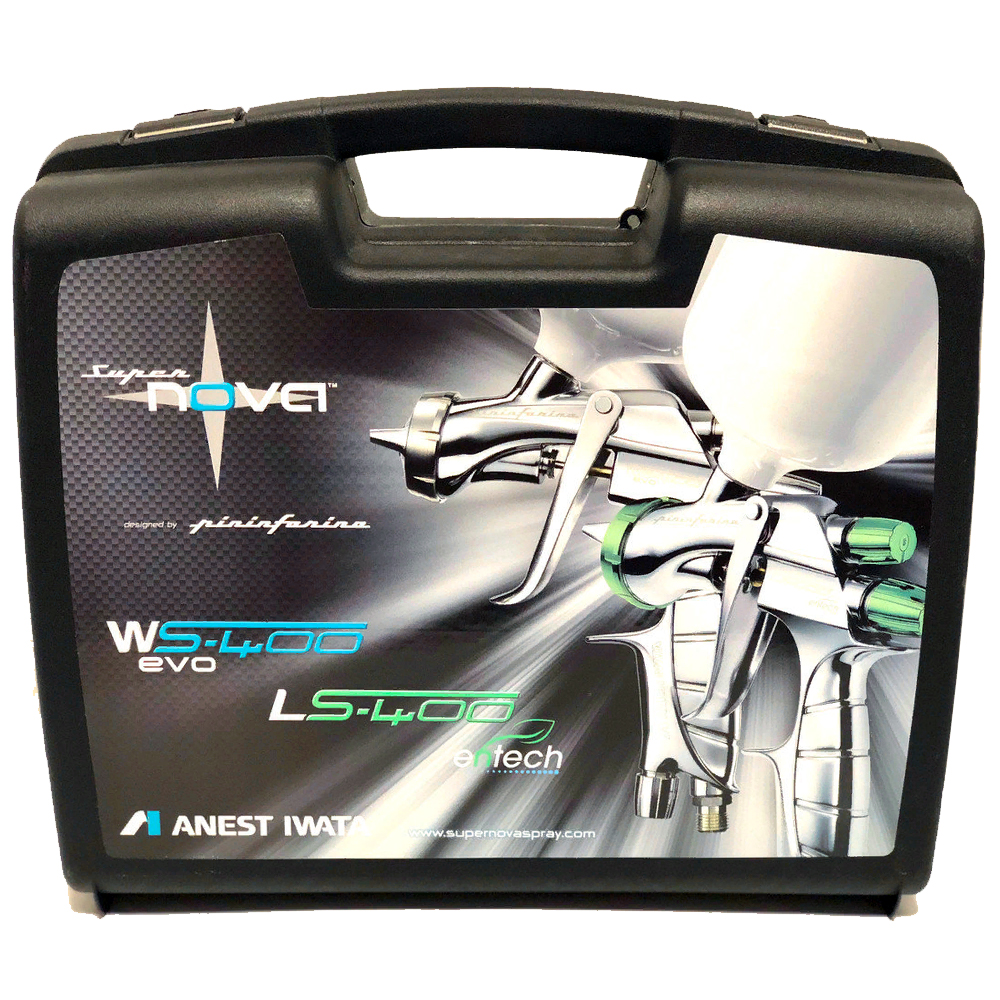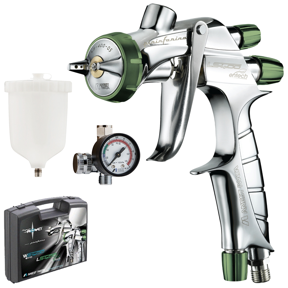 НАБОР В КЕЙСЕ С МАНОМЕТРОМ! Краскораспылитель универсальный Anest Iwata LS-400 SuperNova – топовый краскопульт линейки HVLP от Anest Iwata. Модель имеет уникальный дизайн, выполненный при участии итальянской компании Pininfarina. Вес изделия составляет всего 475 грамм без бачка и 695 грамм с бачком. LS-400 Entech - это идеальный вариант для красок как на сольвентной, так и на водной основе, для работы в изменчивых условиях внешней среды. В данной модели объединили технологии HVLP и запатентованной технологии пред-атомизации (разрезанная дюза). Обновленный LS-400 Entech обладает широким факелом с еще более равномерной атомизацией ЛКМ по всей его плоскости, высоким коэффициентом переноса и максимальной экономией материала.
