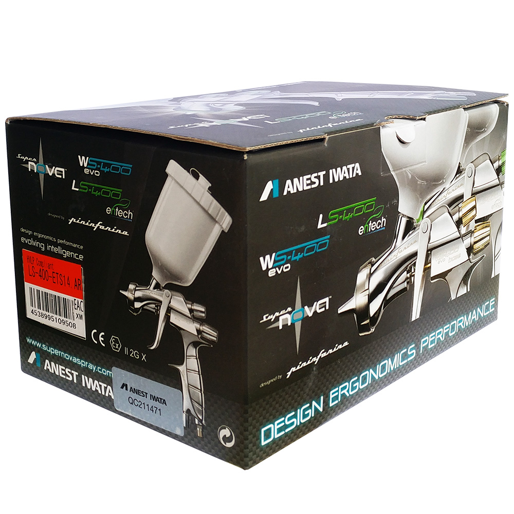 Краскораспылитель универсальный Anest Iwata LS-400 SuperNova – топовый краскопульт линейки HVLP от Anest Iwata. Модель имеет уникальный дизайн, выполненный при участии итальянской компании Pininfarina. Вес изделия составляет всего 475 грамм без бачка и 695 грамм с бачком. LS-400 Entech - это идеальный вариант для красок как на сольвентной, так и на водной основе, для работы в изменчивых условиях внешней среды. В данной модели объединили технологии HVLP и запатентованной технологии пред-атомизации (разрезанная дюза). Обновленный краскопульт для автомобиля LS-400 Entech обладает широким факелом с еще более равномерной атомизацией ЛКМ по всей его плоскости, высоким коэффициентом переноса и максимальной экономией материала.