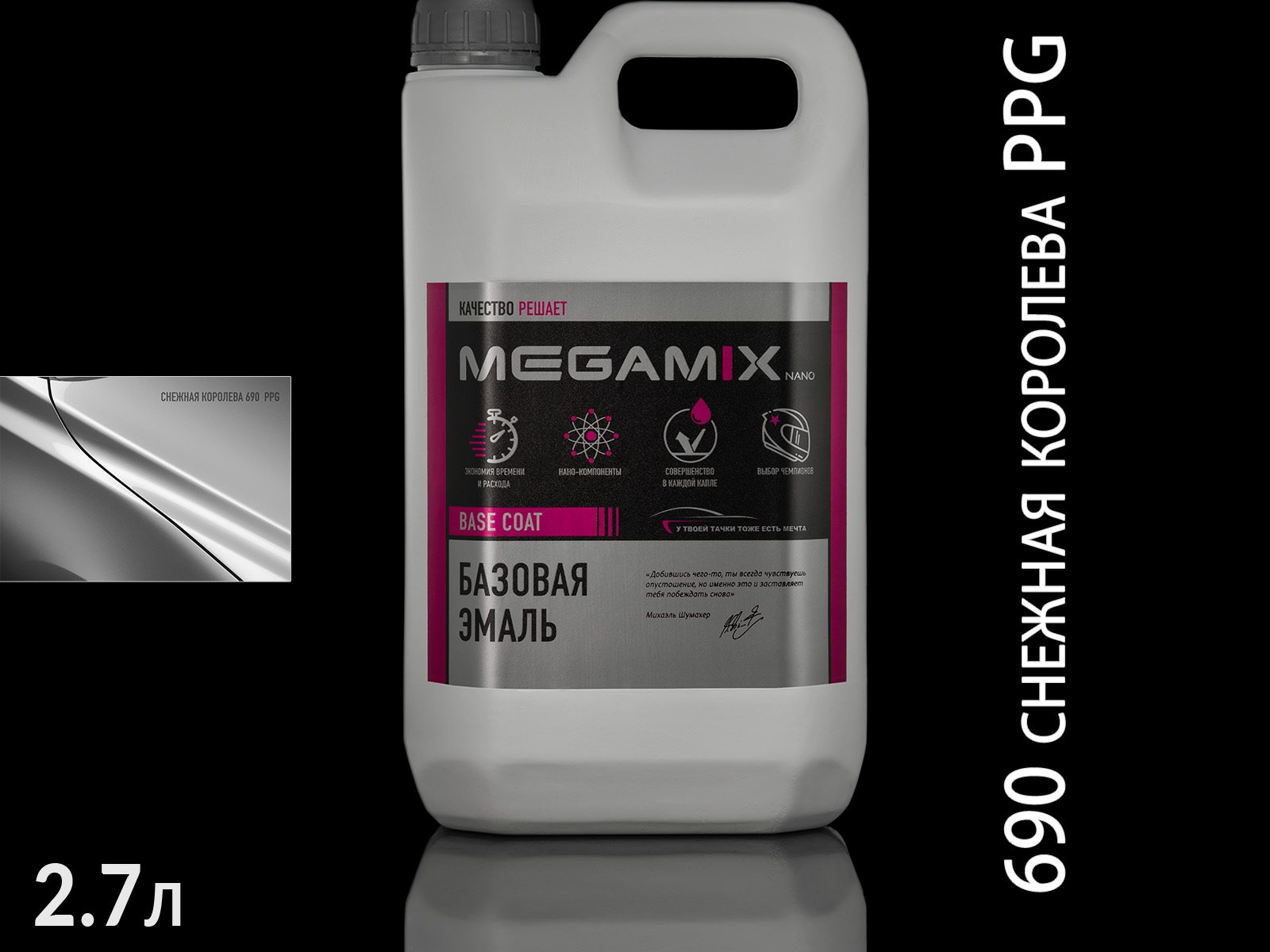 1. 690 снежная королева PPG металлик автоэмаль MEGAMIX (2,7л)1